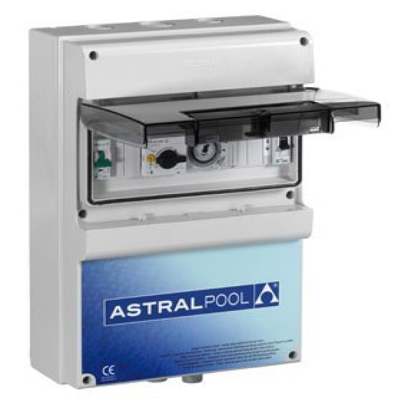 Protección IP-65. Cristal transparente con cierre y llave. Todos los productos son compatibles con: - 220/240V 1-fase (P+N+T) 50Hz/60Hz - 380/415V 3-fase (3P+N+T) 50Hz/60Hz - 220/230V 3-fase (3P+T) 50Hz/60Hz Reloj de control 24H con pasos de programación cada ¼h. Conexión para control remoto de la bomba (run/stop,...) para equipo auxiliar (detector frío, nivel control...). Todos los productos se entregan con: - Esquema eléctrico - Diagrama de conexión - Instrucciones de instalación - Certificado de conformidad CE - Prensa estopa para cada entrada y salida de cable. - Tornillos y tacos (4) para instalarlo en pared. Dependiendo de la corriente nominal de la bomba de filtración se debe seleccionar el tipo de armario: Protección magnetotérmico (1,6 hasta 10A) contactor, reloj de programación 24 h. 3 posiciones: Auto / 0 / manual. 12V 315VA. Salida protegida para 1 luz subacuática.