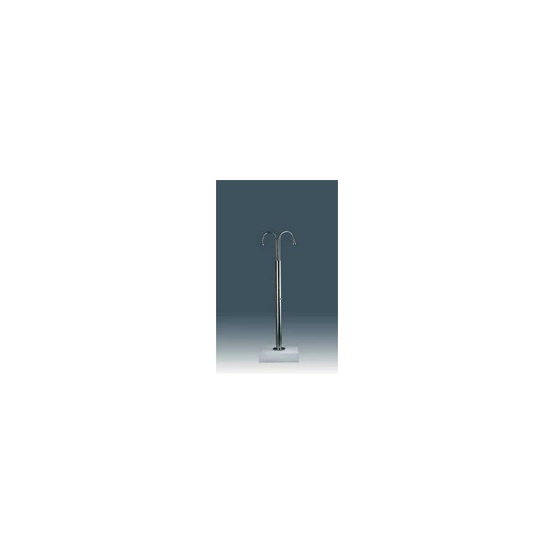Ducha con 2 rociadores y 2 pulsadores temporizados. Diseñadas para instalar en lugares públicos. Fabricada en acero inox. AISI-316. Tubo Ø 129 mm, con anclaje incorporado. Altura de los rociadores al suelo: 2,35 m.