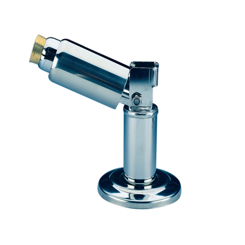 Anclaje articulado de acero inoxidable 18/8 (AISI-304) para escalera, tubo Ø43 mm. Eje de giro con tornillo y tuerca autoblocante.