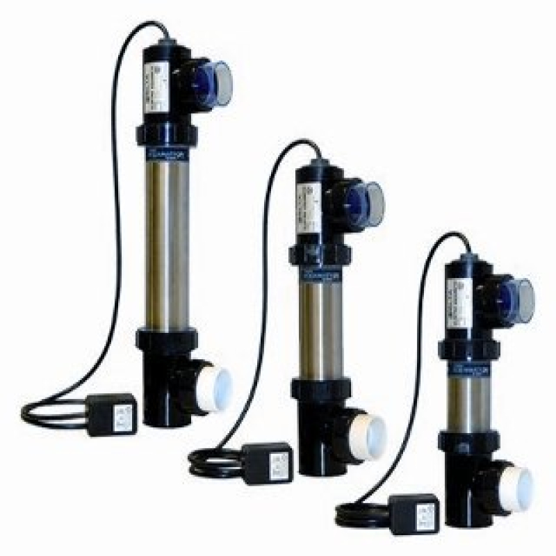 Equipo automático de rayos de luz ultravioleta UV-C que consigue una doble desinfección del agua mediante una reducción muy importante de las cloraminas (cloro combinado) y la neutralización de las bacterias, virus y otros microorganismos presentes en el agua, impidiendo que se reproduzcan. El resultado es una excelente calidad del agua, sin malos olores ni problemas de irritación de los ojos, menor gasto de producto químico y ahorro de agua de renovación. Se mantendrá un residual de desinfectante pero el gasto de producto químico es notablemente inferior. Fácil instalación mediante by-pass en la línea de retorno a la piscina, y mantenimiento mínimo: solo se cambia la lámpara. Equipo ultravioleta ''LP'' Gama Elektra EA 4H: La linea Elektra EA es para spas, piscinas pequeñas e estanques. Diseño exclusivo que incorpora una cámara húmeda de acero inoxidable, junturas de cámaras completas, que hacen más sencilla la limpieza de los tubos de cuarzo. La rotación de 360º de las posiciones de entrada y salida hacen que la instalación de la gama EA sea muy sencilla y adecuada para tratar instalaciones pequeñas. Aplicación en Spas, Aquariums, Piscicultura, Estanques - Lamparas Ho a Baja Presión. Dosis 30 mJ Temperatura Máxima Agua 40ºC.