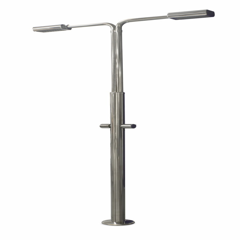 Ducha de acero inoxidable pulido AISI-304 (diámetro 63 mm) con 2 rociadores antical cromados y 2 válvulas de apertura caudal. Con anclaje incorporado 27333