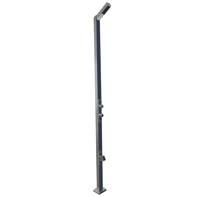 Ducha de acero inoxidable AISI-304 pulido, especialmente diseñada para instalaciones con alta de densidad de usuarios (piscinas públicas o semi-públicas). Las duchas AstralPool para instalaciones públicas se caracterizan por la alta resistencia de sus materiales, considerados anti-vandálicos, y por el ahorro de agua gracias a la incorporación de limitadores de caudal. Altura del rociador al suelo: 2 m. Fijacion al suelo con tornillos, con anclaje incorporado.