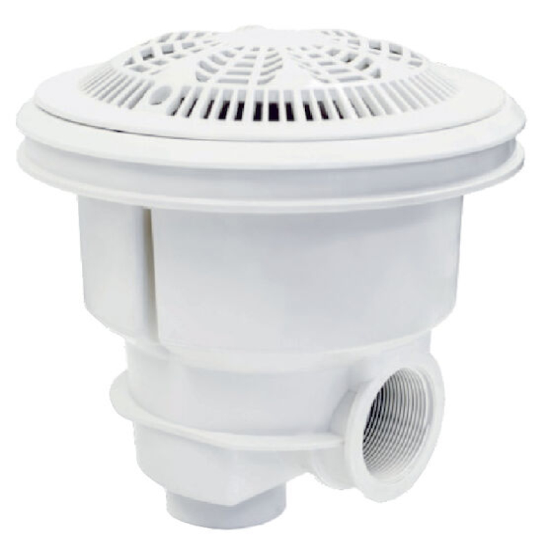 Cumple con la norma EN-13451-3. En ABS blanco con tratamiento anti-UV. Salida lateral hembra de 2" - Salida inferior de 1"½. Caudal máximo 15m³/h.