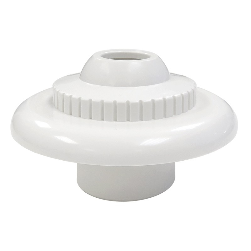 Piscina de hormigón - Boquillas Boquilla de impulsión. Rosca exterior 2”, Ø interior 50 mm Impulsión/Aspiración. Caudal regulable. Fabricada en material plástico ABS y tornillería en acero inox. Caudal máximo recomendado según norma EN 13451-1: 12 m3/h. Existe en color Blanco, Beige, Gris Claro y Antracita. Conforme a las normas: EN 16582-1 EN 16713-2